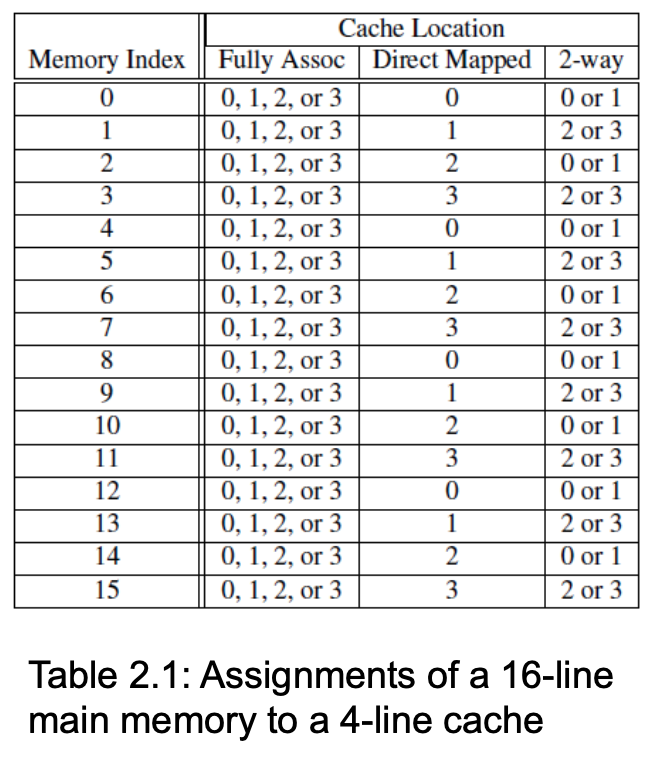 Figure fig-cache-mapping displays the difference between the 3 cache mapping techniques.