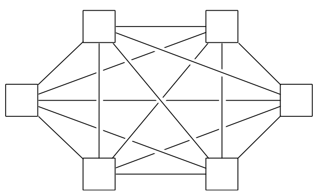 Impractical in the real world due to cost (Required number of links \(p^2/2 + p/2\)