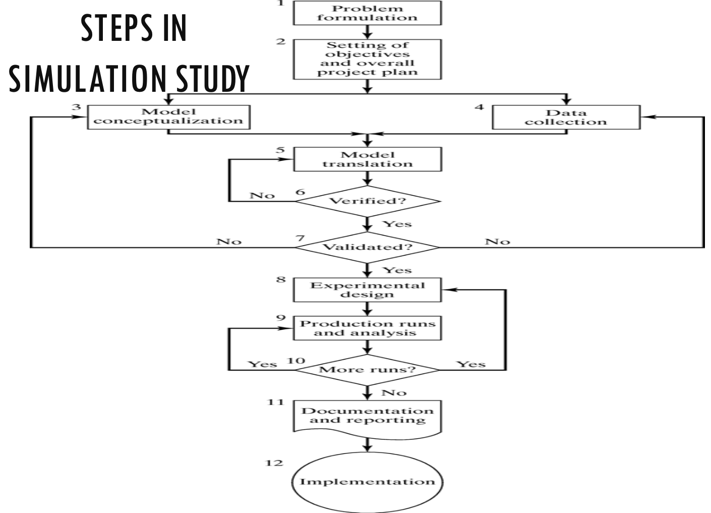 • Problem Formulation: A statement of the problem that is clearly understood by both the simulation analyst and the client.